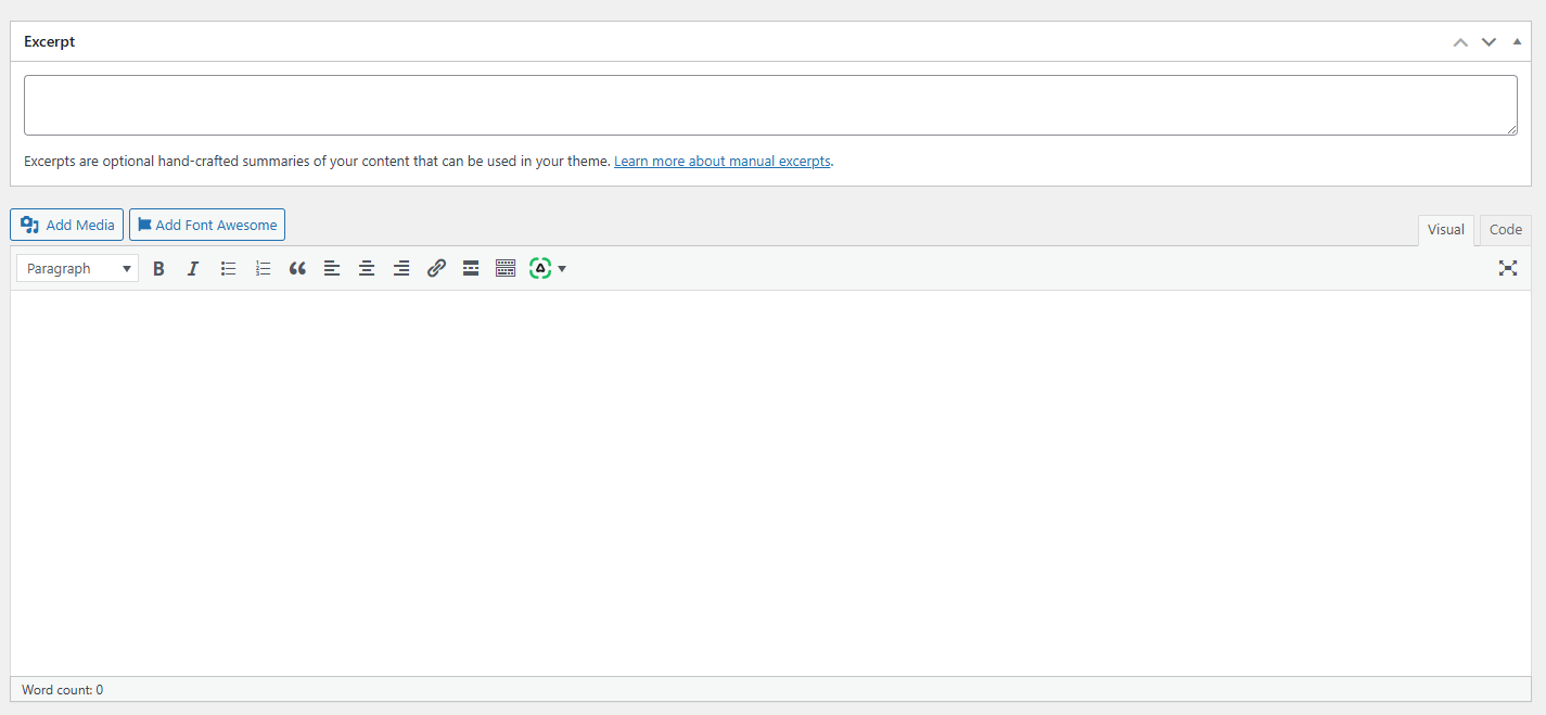 The Excerpt box may be below the content box on your screen, you can drag and drop it to your preferred spot.