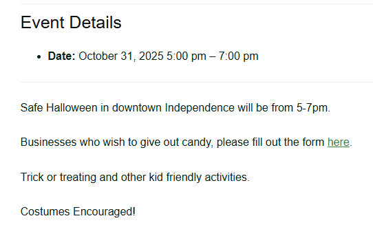 • End Date / Time: When the event ends (for multi-day events, consider using a recurrence instead, see note Multi-Day Events below)